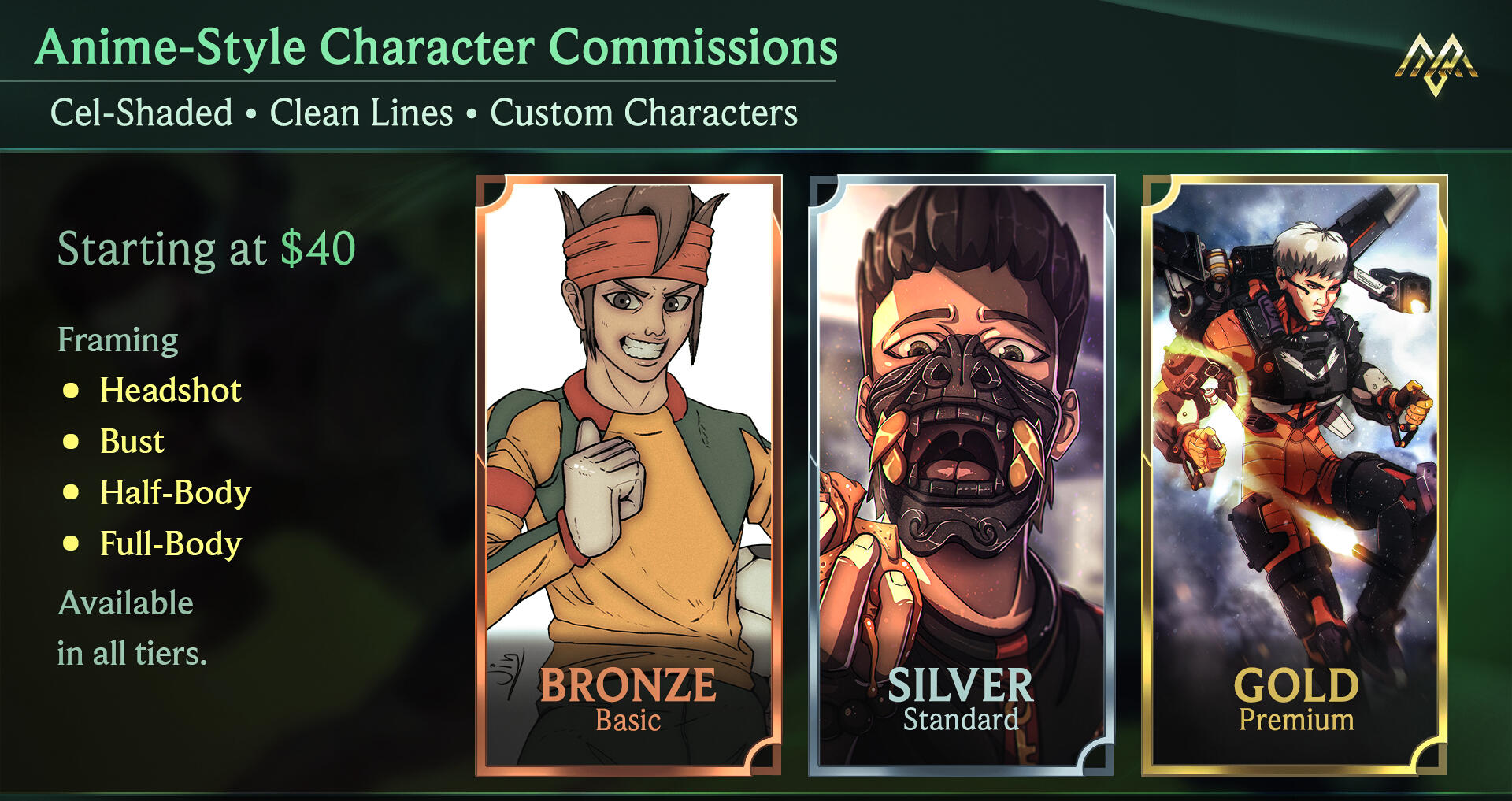By commissioning me, you agree to these terms and conditions.Please read them carefully before placing an order or sending payment._________________________________________________________1. What I offer:- Custom Illustrations (Original Characters, Fanart, Portraits, Social Media Banners and similar.)2. What I do NOT Offer:- NSFW / explicit sexual content (slightly lewd is fine)- Extreme Gore or Hateful content- AI-Generated artwork- Requests involving illegal material.If you're unsure whether your idea fits, I highly recommend messaging me first!3. Process and Workflow- You will receive a sketch for approval before final rendering. During this stage you can suggest major changes.- Minor adjustments are welcome (Color/Hue Adjustment, Contrast Adjustment)- Once final rendering begins, major changes will require an extra revision fee.4. Revisions- Each order includes a limited number of revisions- Additional revisions can be purchased.- Revisions do not include completely changing the concept, pose or character design after approval.5. Delivery Time- Delivery times depend on the selected tier and extras. I can give you an estimated delivery time, through message.- Rush / Fast Delivery may be available with an additional charge - We can discuss it through messages.- Delays caused by late client responses may affect delivery time.6. Usage and Rights- By default, all commissions are for personal use only.- Commercial use (YouTube, monetization, branding, merch, etc.) requires purchasing a commercial license.- I retain the right to showcase all artworks in my portfolio and on social media unless otherwise agreed.7. Refunds and Cancellations- Refunds are not available once work has started.- If a commission is cancelled before work begins, a full refund may be issued.- If I am unable to complete your commission for any reason, you will receive a full refund.8. Communication- Clear references and descriptions are highly appreciated!- Please be respectful and patient - good communication leads to the best results.______________________________Commissioning art is a collaborative process.I will always do my best to deliver high-quality work that meets your expectations!Thank you for the support!